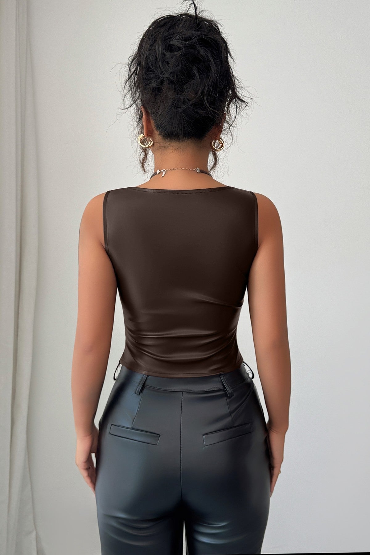 This structured vest is your new go-to piece for effortless sophistication. The square neckline frames your shoulders beautifully, while the pleated detailing adds dimension and visual interest. Fitted through the torso for a flattering silhouette, it layers perfectly over tees, blouses, or dresses. Whether you're dressing up for brunch or keeping it casual, this versatile vest brings polished charm to any outfit. A wardrobe essential that keeps coming back into rotation.