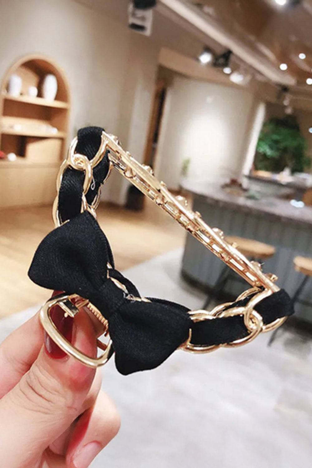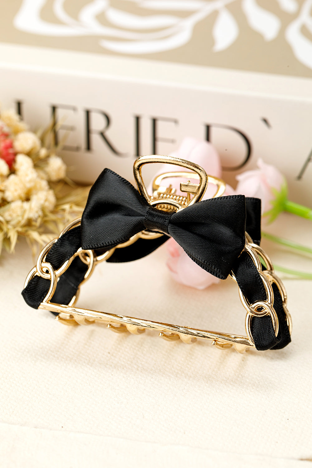 Add a touch of charm to your hairstyle with the ON GO FASHION CLIP. Featuring a playful black ribbon bow detail and a sleek contrast alloy finish, this hair claw clip effortlessly secures your hair while making a stylish statement. Perfect for quick, chic looks on the move!