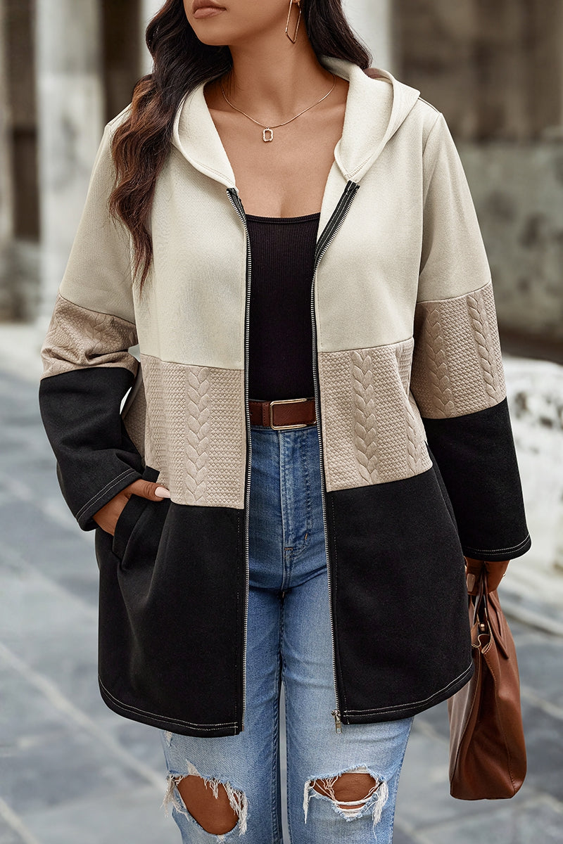 Be ready for any adventure in our elegant OUT FOR THE DAY JACKET. Made from 100% polyester, this premium piece boasts color block pockets and a convenient zipper hoodie, providing both style and functionality. Stay chic and protected in its long sleeves while you conquer the day.