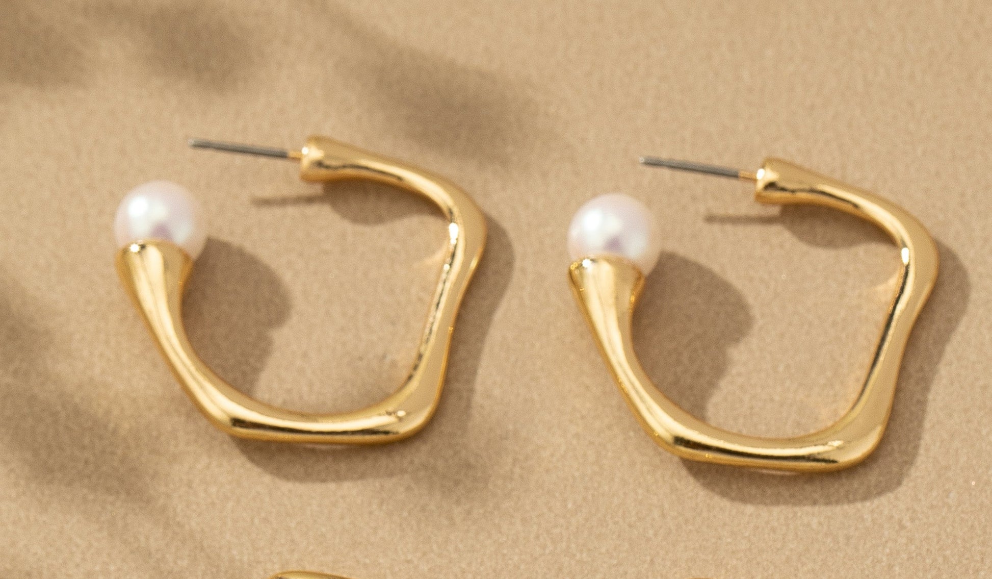 Elevate your ear game with these stunning wavy hoops that dance with movement and grace. Crafted in lustrous gold, each hoop features a delicate pearl nestled at the end, adding a touch of timeless elegance to your everyday look. Perfect for mixing classic sophistication with modern flair, these beauties work solo or paired with your favorite studs. Whether you're dressing up for a night out or keeping it casual, these wavy wonders bring just the right amount of sparkle and charm to any occasion.