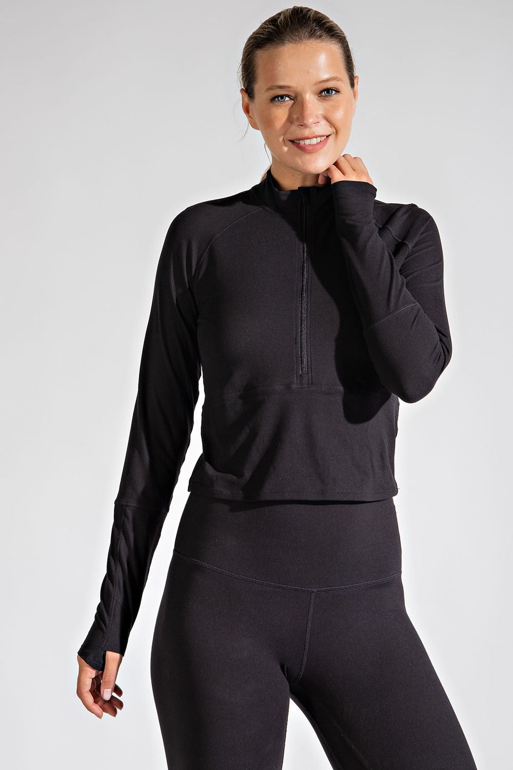 The Quick Decisions Top features a luxurious butter yoga fabric that moves with you, offering unparalleled softness and breathability. The half-zipper front design provides versatile styling options—wear it fully zipped for a polished look or partially open for effortless layering. Perfect for yoga, pilates, or elevated everyday wear, this piece seamlessly transitions from studio to street with refined elegance and comfort.