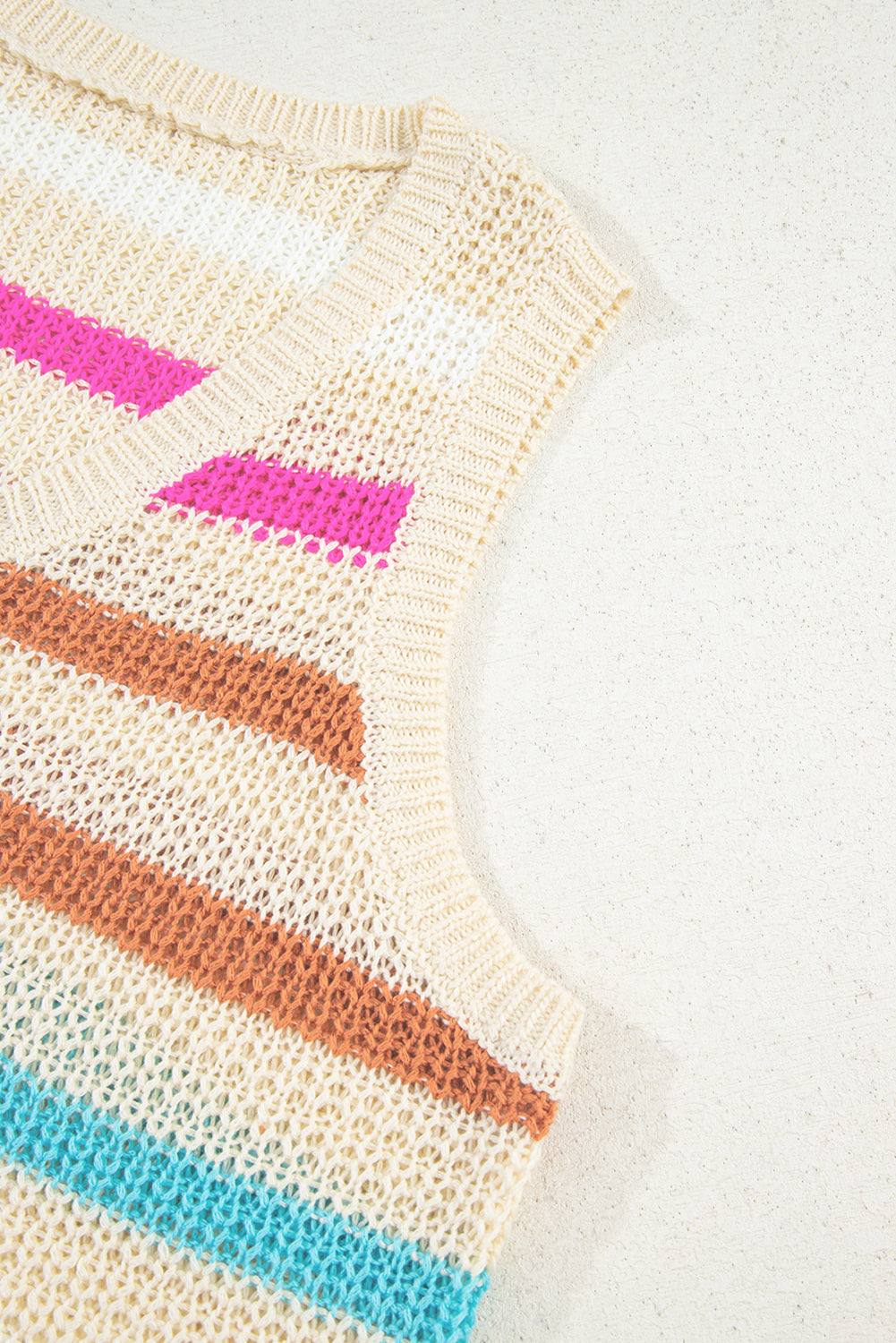Elevate your style with the Vanessa Vest Top, a daring take on the classic sweater vest. Crafted in a khaki stripe textured knit, this piece adds bold dimension and effortless edge to any outfit. Perfect for layering or wearing solo, it redefines casual chic with a confident, modern twist.